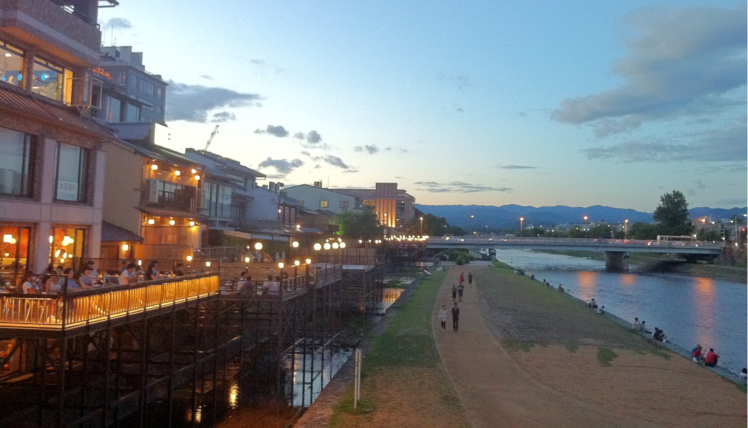 京都の夏の風物詩「鴨川納涼床」遡ること江戸時代から始まる伝統が様々な歴史を経て現在もその形を残しております。
